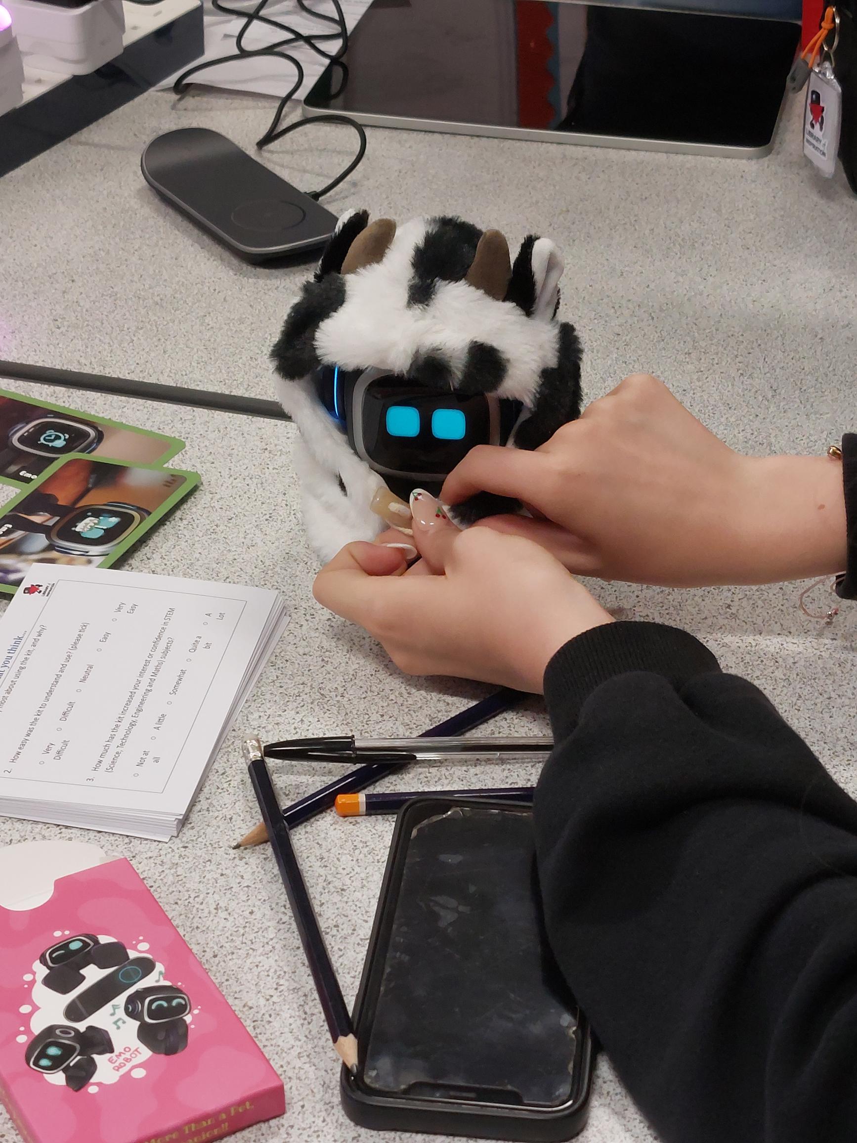 The first job for our pupil co-designers was to try out some of the technology we had, to see what kind of kits might capture their imagination. Together the pupils and students experimented with a range of technology from VR headsets to robots, considering what would be engaging and fun for other first year pupils.